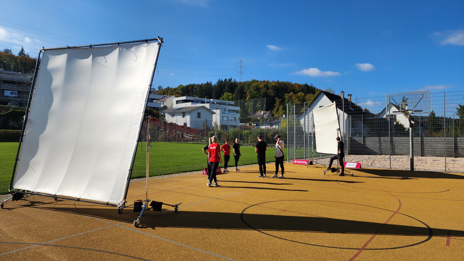 Über unsere Webseite, den Newsletter und die sozialen Medien wurde im Vorfeld nach Freiwilligen gesucht und das Echo war überwältigend: Rund 40 motivierte Teilnehmer*innen meldeten sich, darunter viele Freunde und Familienmitglieder von STV-Mitarbeitenden. Für das perfekte Bild gaben sie alles: Sie machten Yoga-Sessions, übten Gleichgewicht auf Baumstämmen, joggten durch den Wald, spielten Fangis und absolvierten einen Staffetenlauf durch die Turnhalle. Für die Videoszenen hiess es zudem: Durchhalten! Unsere Videostars liefen unzählige Male die Treppe hinauf und drückten immer wieder auf den Liftknopf, bis jede Sequenz perfekt im Kasten war. 🎬