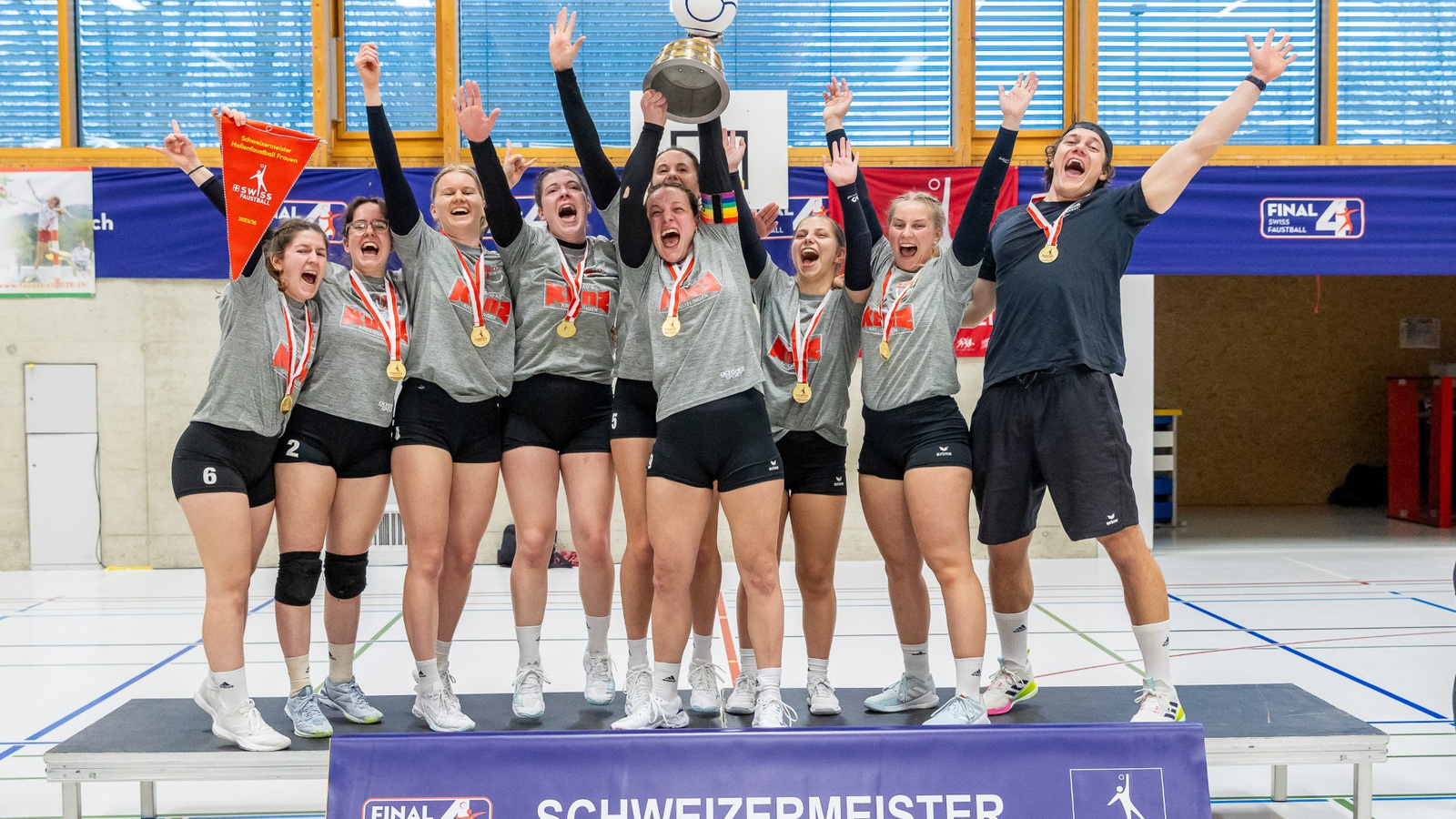 Doch Kreuzlingen gab am heutigen Tag nicht auf. Die Thurgauerinnen gewannen den dritten Satz klar und schafften im vierten Durchgang das Kunststück, beim Stand von 8:10 zwei Matchbälle abzuwehren und den Satzausgleich zu schaffen. Diesen Schwung konnten sie allerdings nicht in den Entscheidungssatz mitnehmen. Sie gerieten schnell mit 0:5 ins Hintertreffen. Doch auch jetzt gaben sie nicht auf und kämpften sich irgendwie zurück ins Spiel. Dank einer Serie von acht Punkten beim Stand von 2:6 erspielten sich die Kreuzlingerinnen vier Matchbälle. Den vierten konnten sie nutzen und lagen sich danach jubelnd in den Armen. «Wir haben die ganze Saison über immer an uns geglaubt. Das war auch heute der Schlüssel. Wir haben bislang sehr oft in den wichtigen Spielen unser Potenzial nicht abrufen können. Heute wollten wir den Sieg aber unbedingt, denn es war das letzte Spiel unseres Trainers Jan und unsere Angreiferin Sara feierte heute ihren Geburtstag. Irgendwie musste es heute einfach passen – genial, dass es tatsächlich geklappt hat», sagt Kreuzlingens Captain Fabienne Frischknecht.